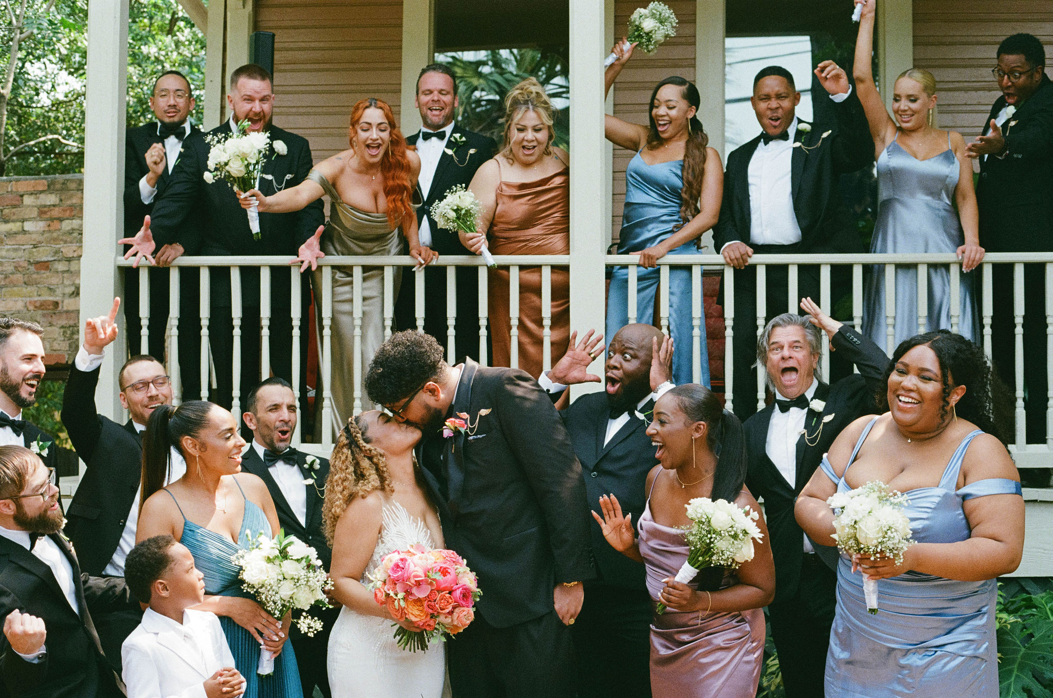 Photographers love this space. Whether you’re capturing golden hour in the courtyard or moody candlelit vows inside, every corner is photogenic. The mix of textures (plush velvet, aged wood & antique mirrors) creates a visual feast for wedding albums. Another win for couples: this venue doesn’t need a ton of decorating. It already feels like a movie set and evokes a house party vibe for a night of dancing and debauchery.